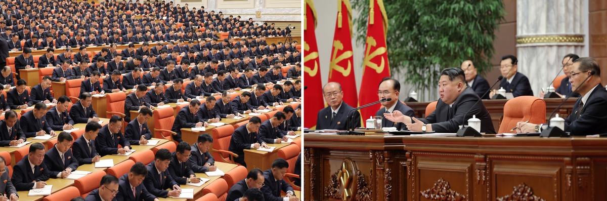 Уважаемый товарищ Ким Чен Ын освещает направление борьбы 2025 года на расширенном заседании XI Пленума ЦК ТПК восьмого созыва. Декабрь 2024 г.