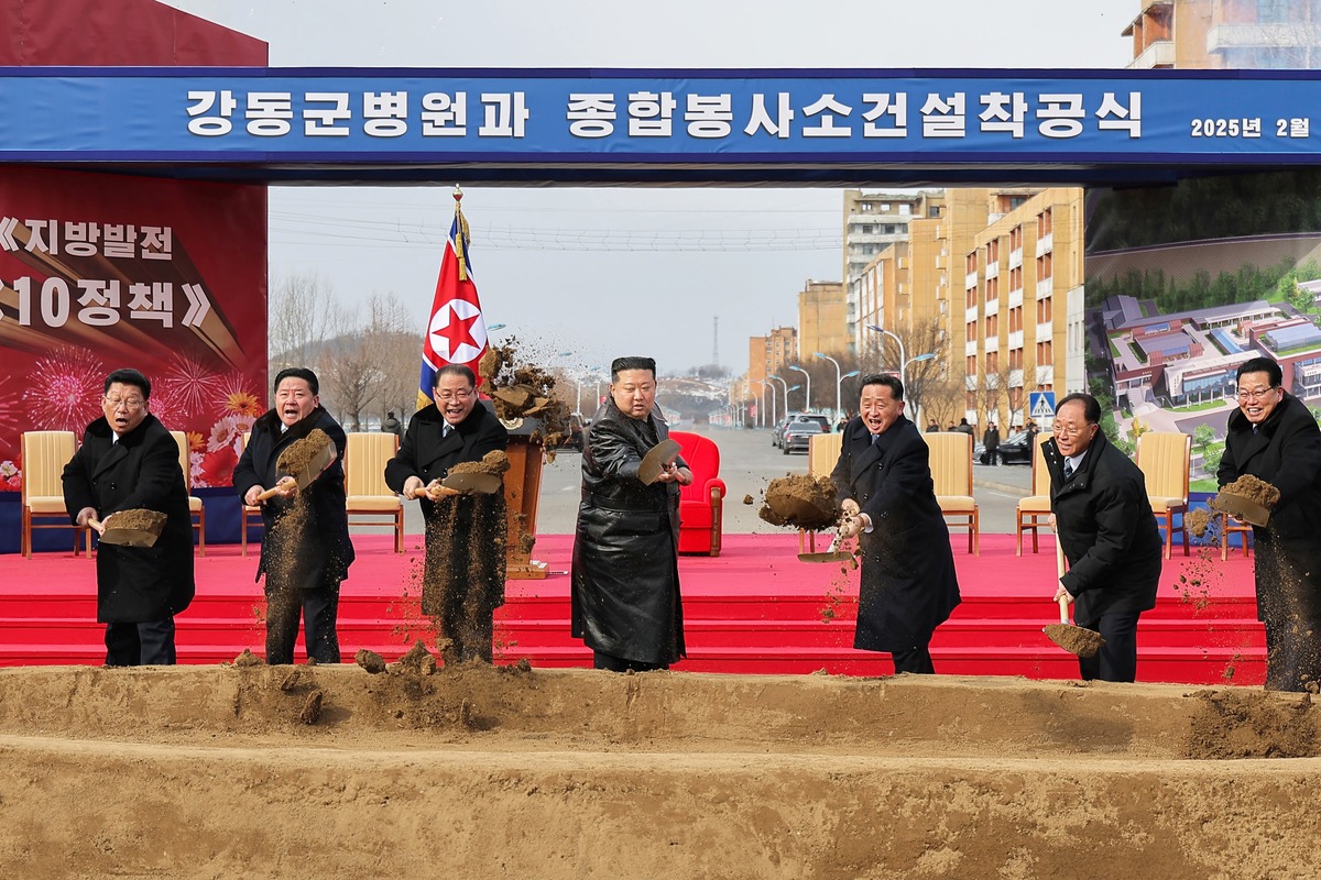 Уважаемый товарищ Ким Чен Ын первым взял лопату на церемонии начала строительства Кандонской уездной больницы и комплекса культурно-бытовых услуг в рамках «политики развития периферии 20×10». Февраль 2025 г.