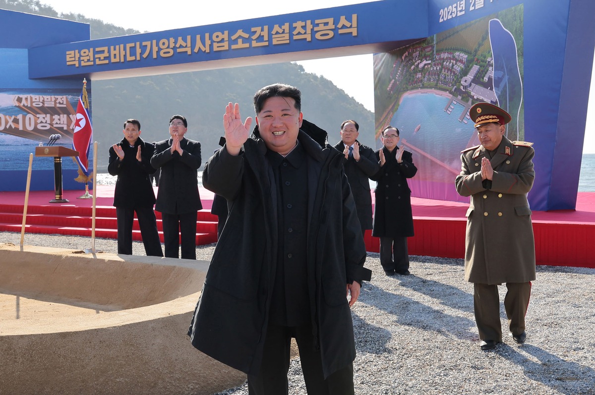 Уважаемый товарищ Ким Чен Ын на церемонии начала строительства Марикультурного хозяйства в уезде Раквон. Февраль 2025 г.