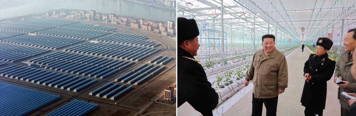 Уважаемый товарищ Ким Чен Ын ознакомляется со строительством Синичжуского тепличного комбината на завершающей стадии. Ноябрь 2025 г.