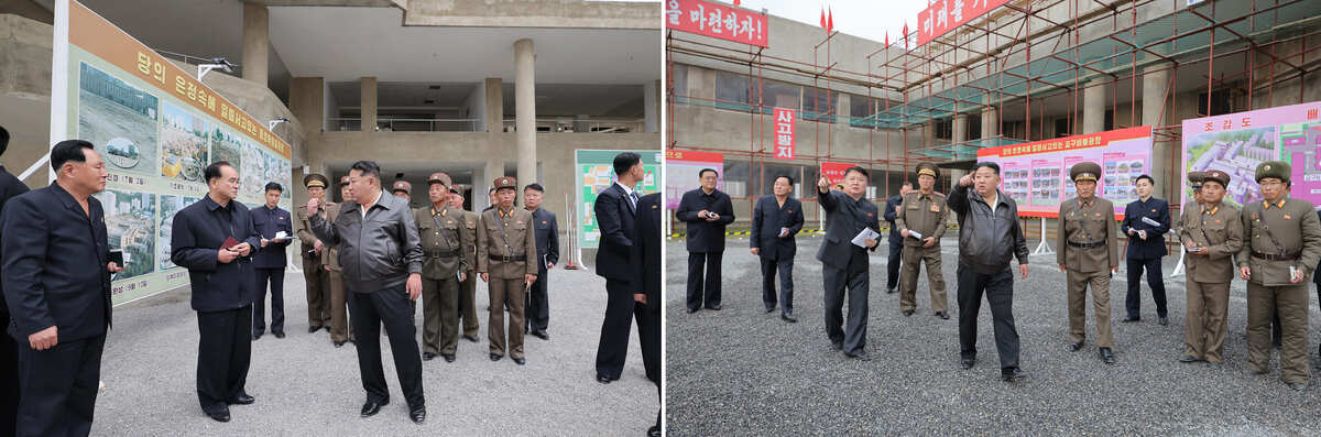 Уважаемый товарищ Ким Чен Ын руководит на месте делами строительства Синичжуского тепличного комбината. Октябрь 2025 г.