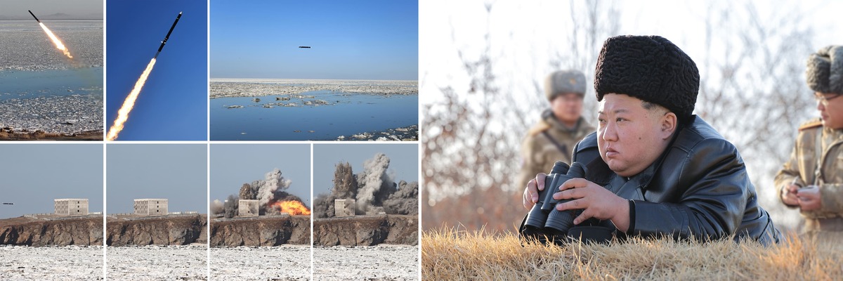 Уважаемый товарищ Ким Чен Ын наблюдает за учениями по запуску стратегических крылатых ракет. Февраль 2025 г.