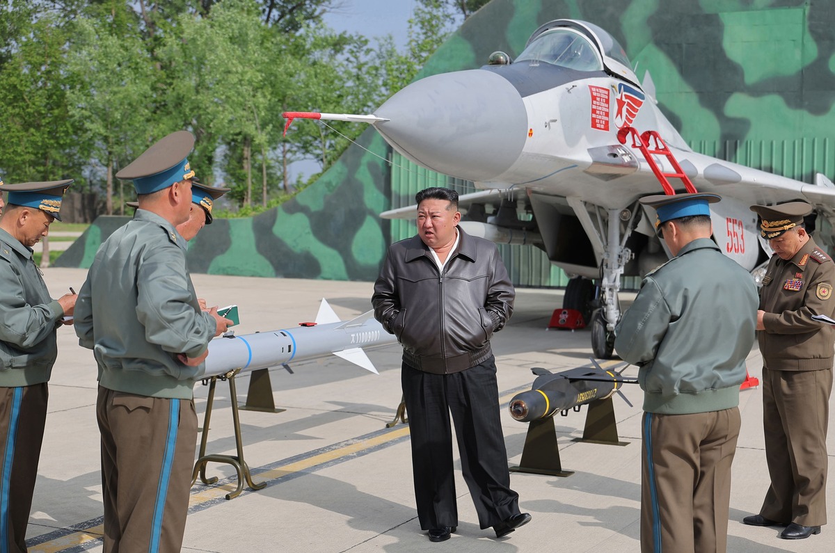 Уважаемый товарищ Ким Чен Ын посещает авиаполк 1-й гвардейской авиационной дивизии КНА и руководит боевыми учениями. Май 2025 г.