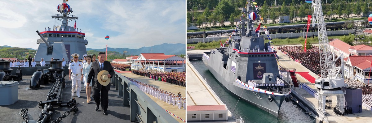 Уважаемый товарищ Ким Чен Ын на церемонии спуска на воду эсминца ВМС КНА. Апрель 2025 г.