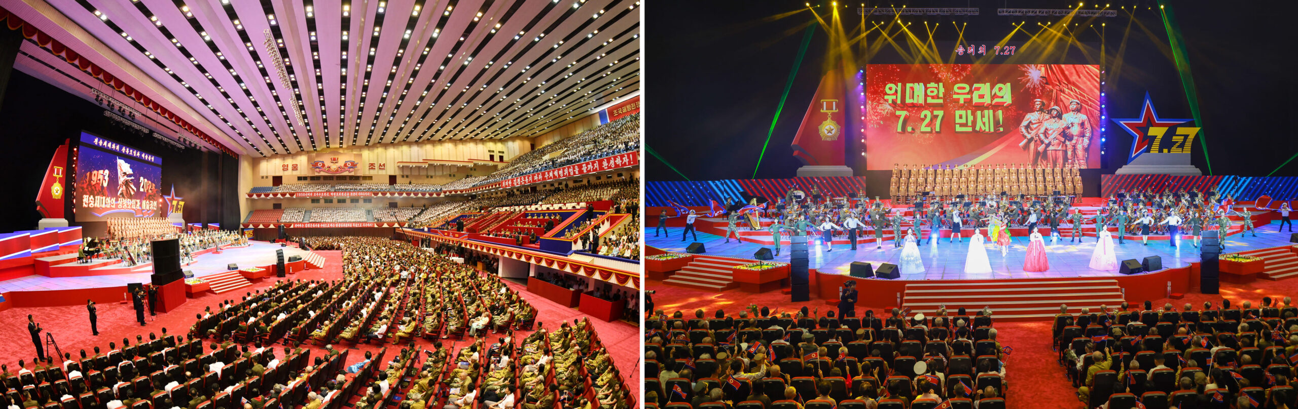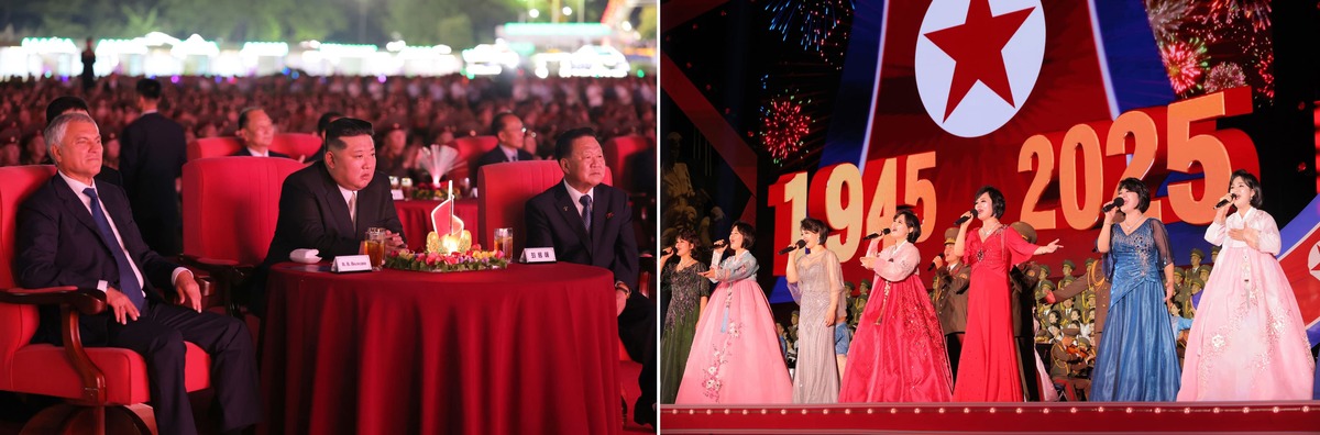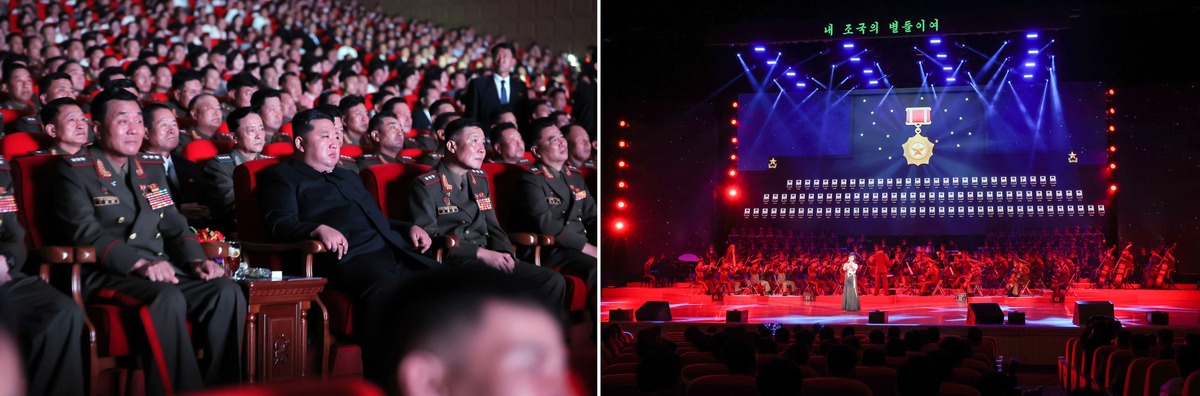 Уважаемый товарищ Ким Чен Ын смотрит поздравительный концерт в честь командиров и бойцов войск зарубежной операции КНА. Август 2025 г.