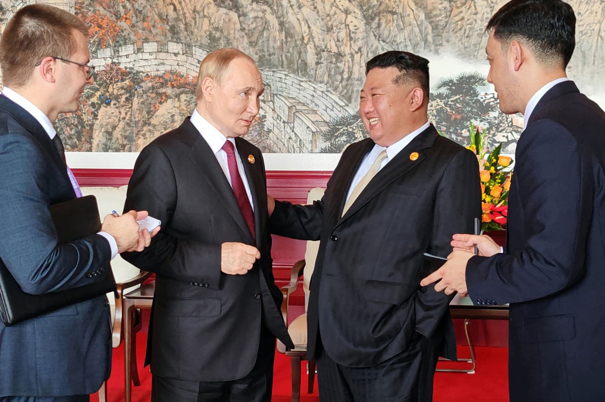 Уважаемый товарищ Ким Чен Ын встречается с Президентом РФ товарищем Владимиром  Владимировичем  Путиным,  принявшим  участие  в  торжественных мероприятиях по случаю 80-летия победы в антияпонской войне китайского народа и мировой антифашистской войне. Сентябрь 2025 г.