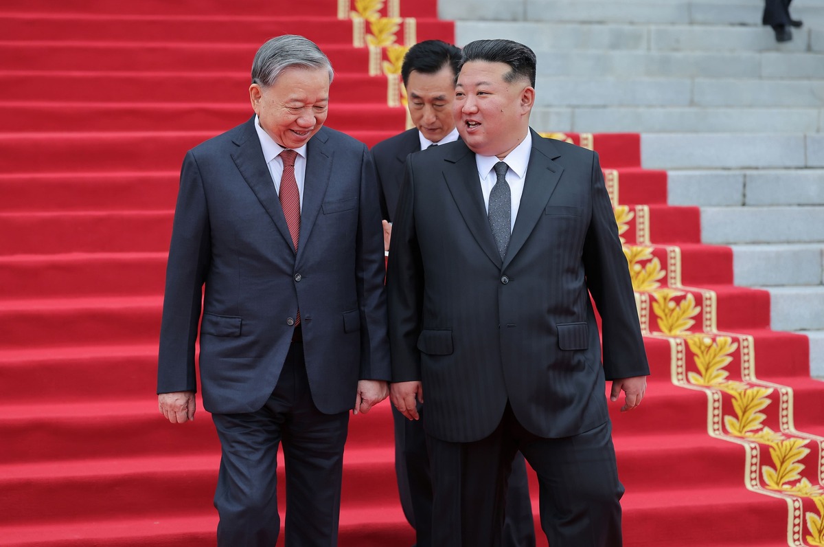 Уважаемый товарищ Ким Чен Ын встречается с Генеральным секретарем ЦК КПВ То Ламом, нанесшим государственный визит в КНДР. Октябрь 2025 г.