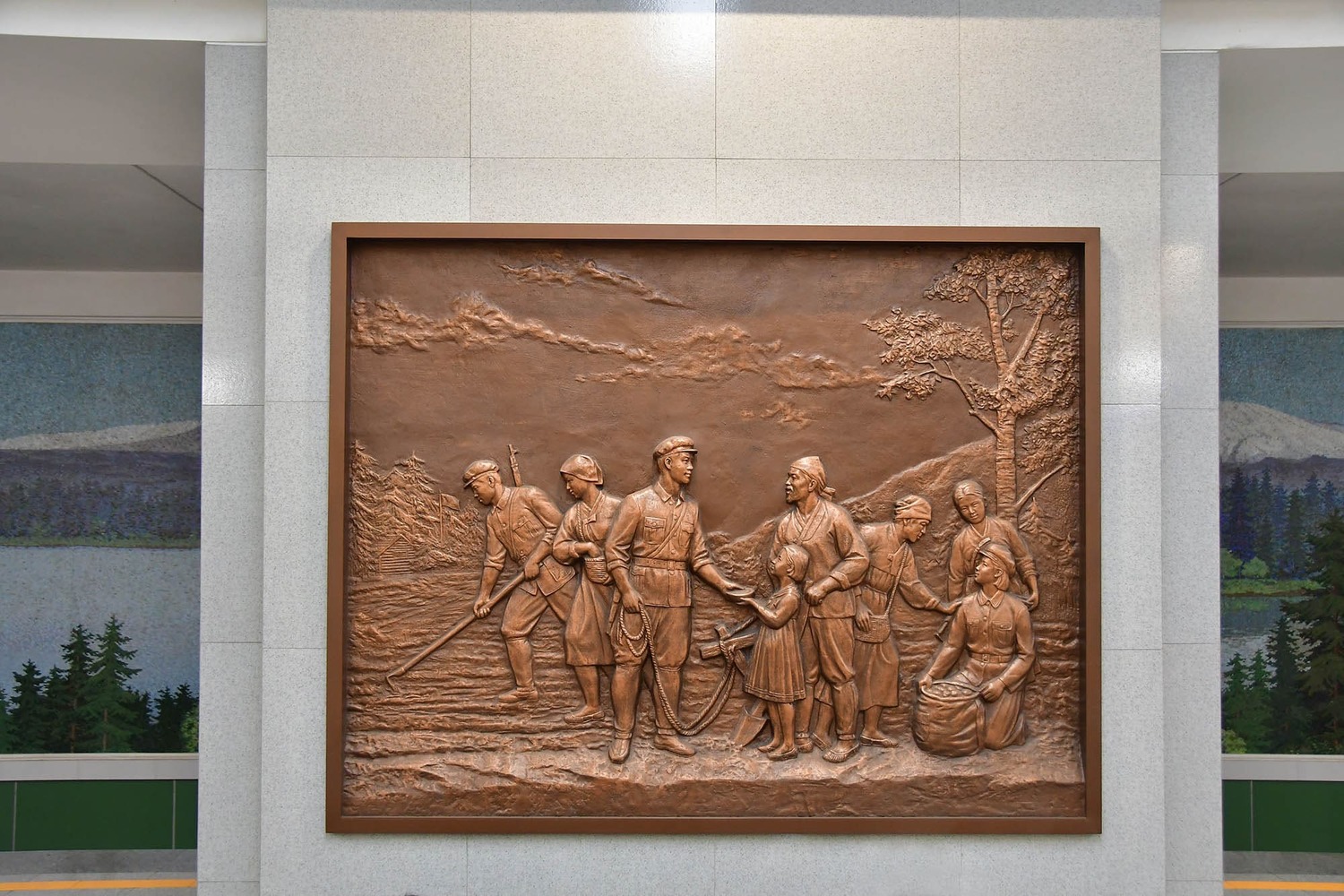 Пхеньянский метрополитен в КНДР служит одним из важных транспортных средств для горожан. В нем много художественных произведений, включая мозаичные панно и скульптуры, которые показывают историю развития страны и облик борьбы народа, что вызывает у людей горячую любовь к своей Родине и гордость за нее.