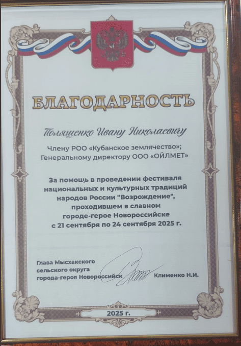 Именно об этом шёл разговор в ходе Приёма непосредственных участников и спонсоров Фестиваля национальных и культурных традиций народов России «Возрождение», который – как сообщалось ранее на нашем сайте — состоялся с 22 по 24 сентября 2025 г. в городе-герое Новороссийске. Его основными организаторами выступили: Региональная общественная организация «Кубанское землячество», Межрегиональная общественная организация сохранения, возрождения культур и традиций народов «Культурные Ценности» (обе — из Москвы) и Управление культуры города-героя Новороссийска.