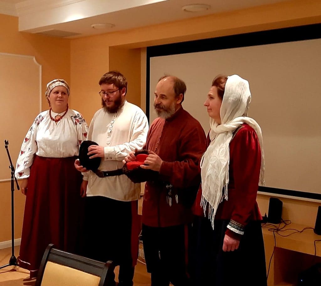Затем перед собравшимися выступил известный в Москве ансамбль старинной казачьей песни «ВЭРЭМИЙ», которым руководит член Кубанского землячества А.В. Кузнецов (на фото: второй — справа). От имени администрации города-героя Новороссийска и поселковой администрации Мысхако (за подписью Главы администрации этого сельского округа Н.И. Клименко) Благодарственные письма были вручены:
